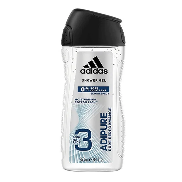Adidas Adipure Pure Performance 3-in-1 Shower Gel, 250ml
