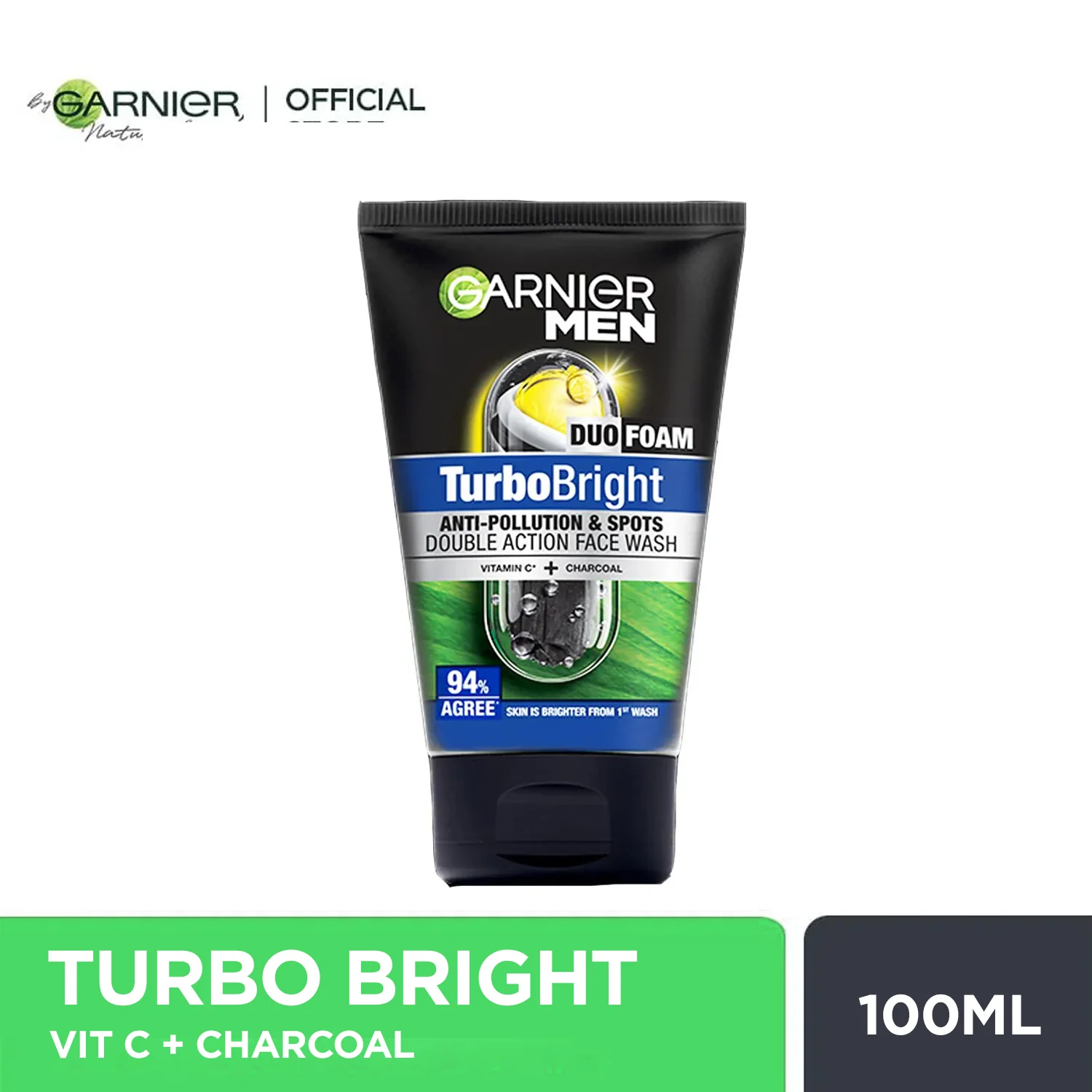 Garnier Men Turbo Bright Duo Foam with Vitamin C and Charcoal deeply cleanses, removes dirt, and brightens instantly. Its Icy Clay Complex refreshes and energizes while revealing clearer, fairer skin in one wash. A powerful daily face wash for clean, bright, and healthy-looking skin.